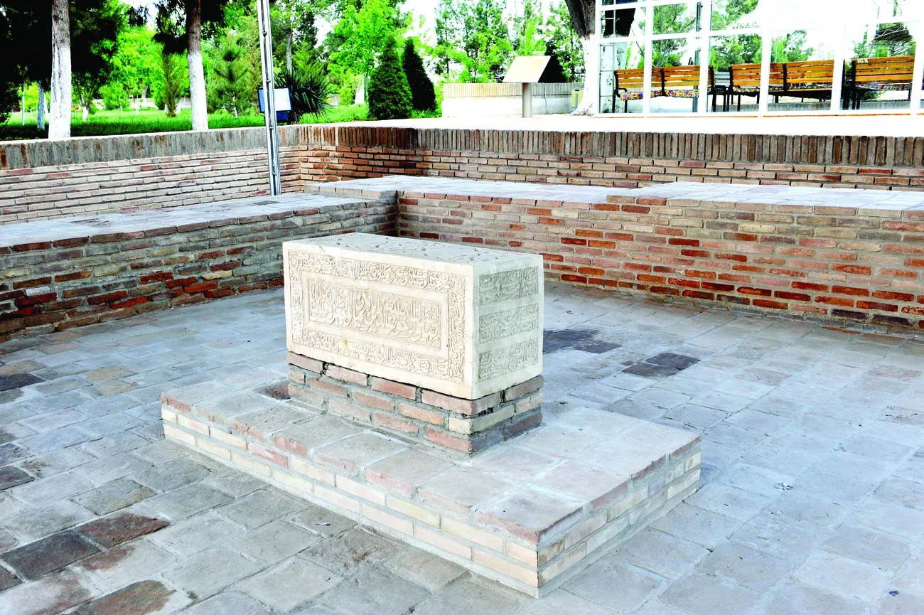 On March 5, 2001, a new parallelepiped - shaped tombstone of gray marble was mounted in the burial chamber. It was made by the master from Nurata (Navoi region), Hamdam Ahror - khodja. The stone was delivered from the Ghazan marble quarry (located in the same district). It is 1.89 m, 93 cm, wide and 1.25 m. high. The shape and decoration of the tombstone is shaped in decorated in imitation of similar gravestones of the epoch of the late Temurids and Shaibanids. In imitation of the same tradition, rather shallow stalactites (sharafa) are carved on the lateral and butt end surfaces of the grave stone. Inscriptions are also arranged in conformity with the same traditions.