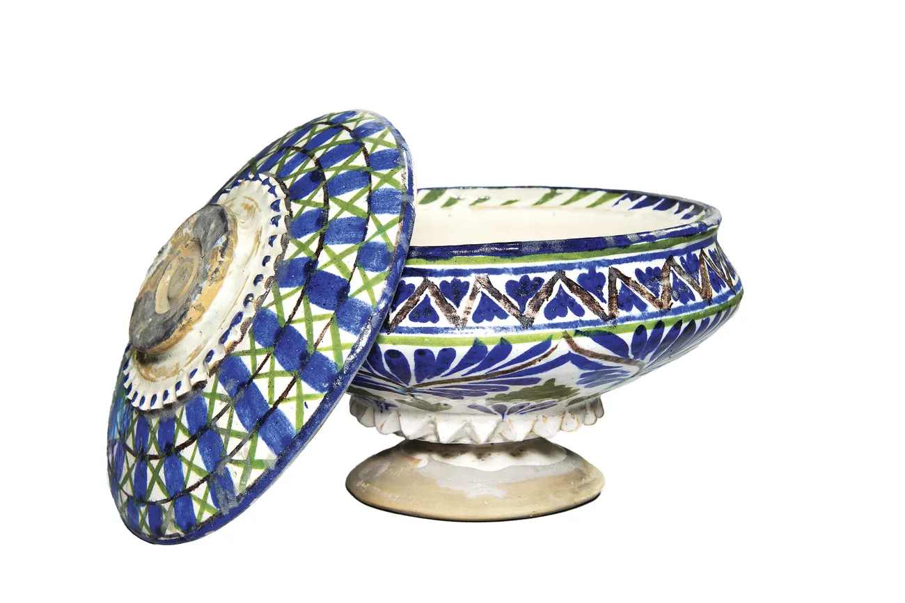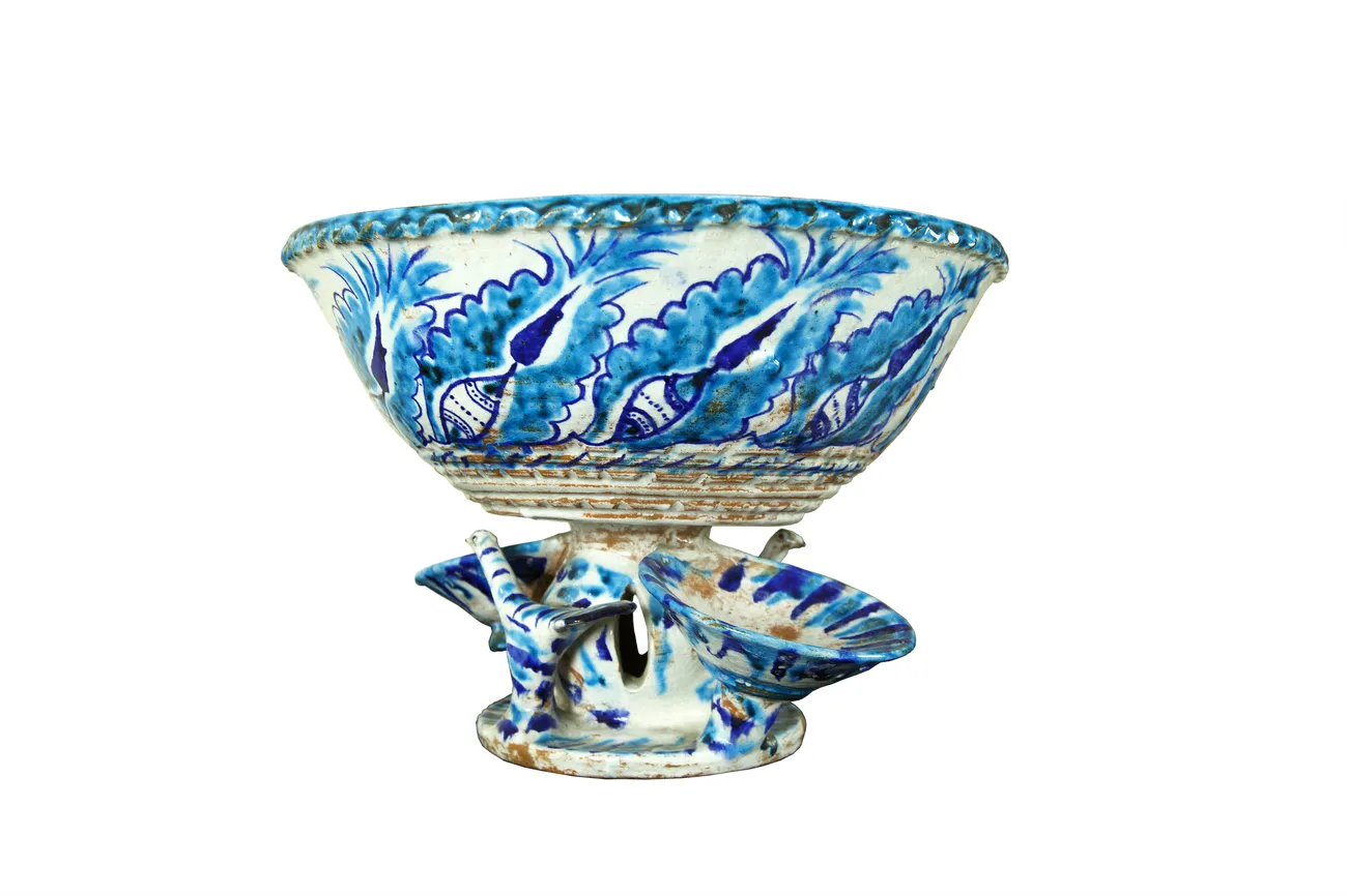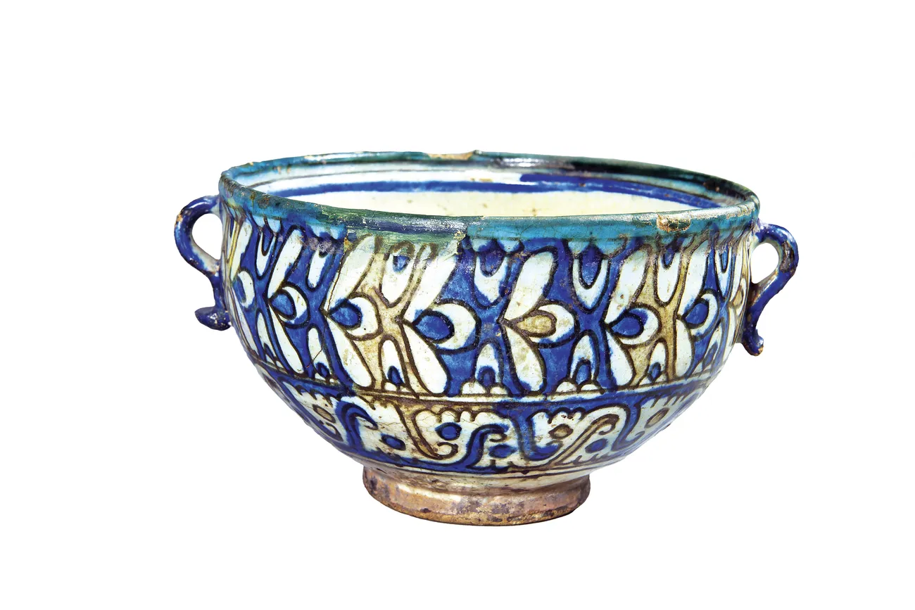 During the period of the Uzbek khanates, there were three schools of this craft: northeastern (Fergana), Bukhara-Samarkand and southwestern (Khorezmian). With a certain degree of similarity, each of them differed in some specific local features. Thus, the ceramics of the Fergana Valley and Khorezm were dominated by a medium blue colour, and alkaline (ishkori) glazing was used. Bukhara-Samarkand centres are known, in turn, for ceramics in a yellow-brown range, covered mainly with lead glaze.