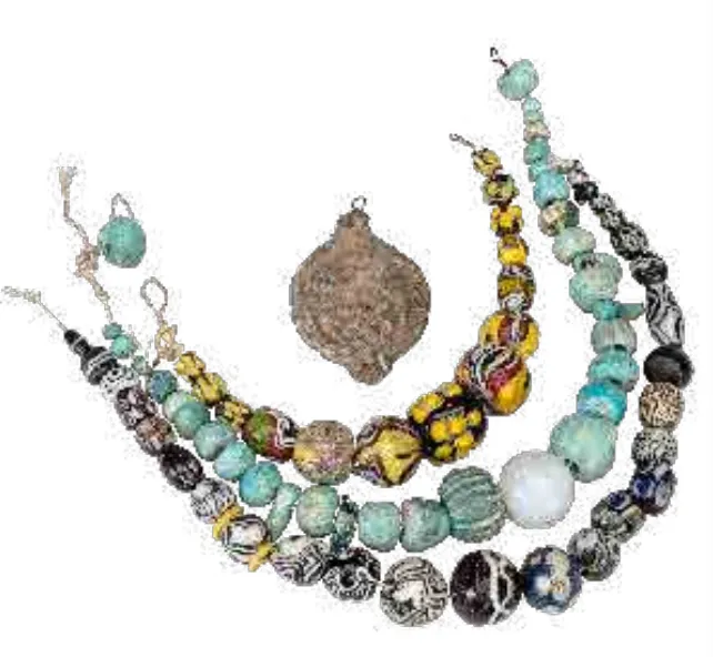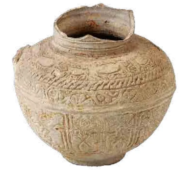 Следы керамического производства на городище относятся еще к кушанскому времени. В ходе разведок 1945 г. А.Н. Бернштам отмечал огромное количество сосудов, полуфабрикатов и гончарного припаса на холмах Мунчактепа и окрестностей. Особенно характерны для Мунчактепа сосуды из серой глины со штампованным орнаментом. Составные части изделия после просушки соединяли, к ним добавляли отдельно сделанные ручку и горло и затем обжигали целиком. Судя по находкам калыбов, их изготавливали тут же, на Мунчактепа. Датируется штампованная керамика от X до XII–XIII вв. На городище широко представлены также бусы. На городище было налажено их производство. Бусы фаянсовые – гладкие и ребристые, стеклянные – глазчатые и полосчатые, черно-белые и цветные. Подобные изделия были широко распространены в XII–XIV вв. на громадной территории – от Средней Азии до Херсонеса в Северном Причерноморье и Каракорума в Восточном Туркестане.