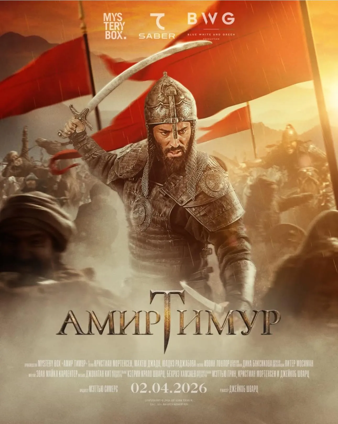 Режиссер Джейкоб Шварц, сценарист Мэтью Грин. Роль Амира Темура исполнил Кристиан Мортенсен. Соперника Амира Хусейна сыграл Махеш Джаду, а жену Алжая - узбекская актриса Юлдуз Раджабова.