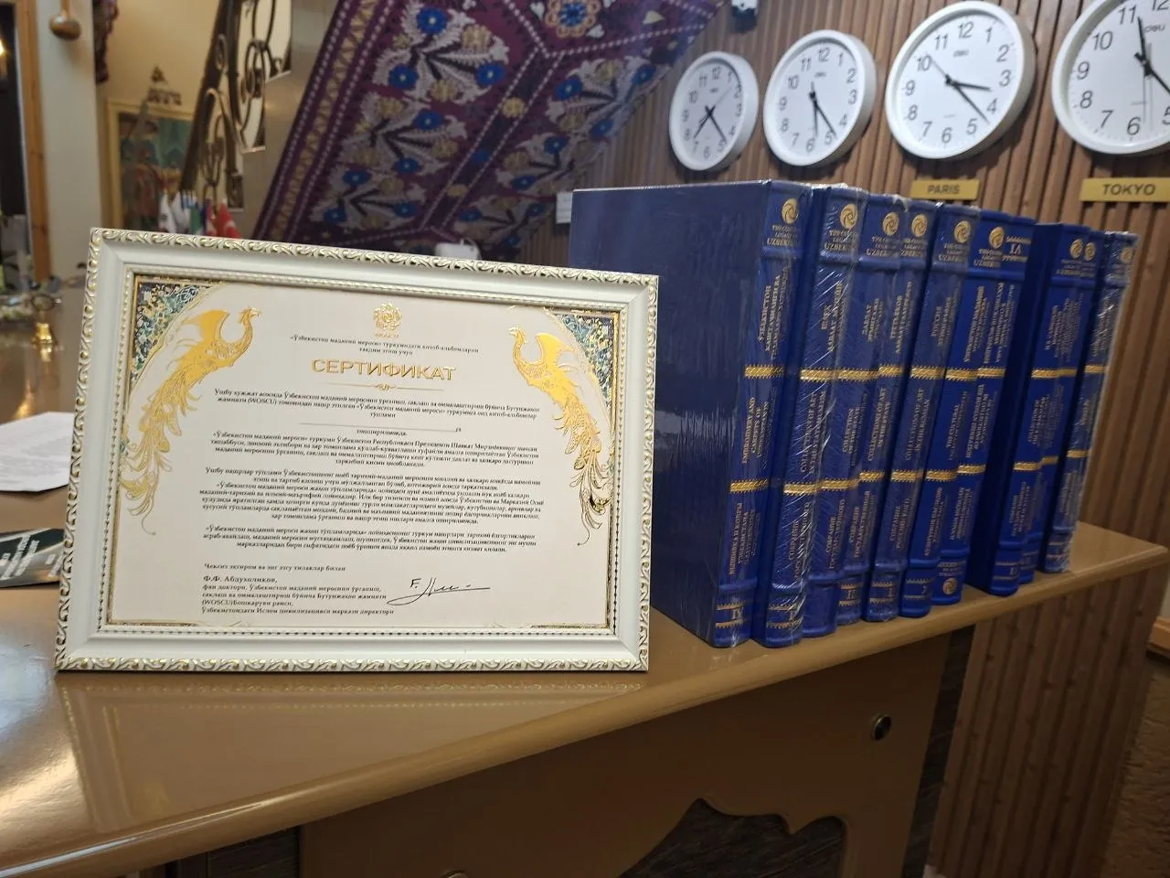 Продолжается работа по безвозмездному предоставлению различным организациям Самаркандской области серии книг-альбомов "Культурное наследие Узбекистана в собраниях мира," изданных Всемирным обществом по изучению, сохранению и популяризации культурного наследия Узбекистана (WOSCU).