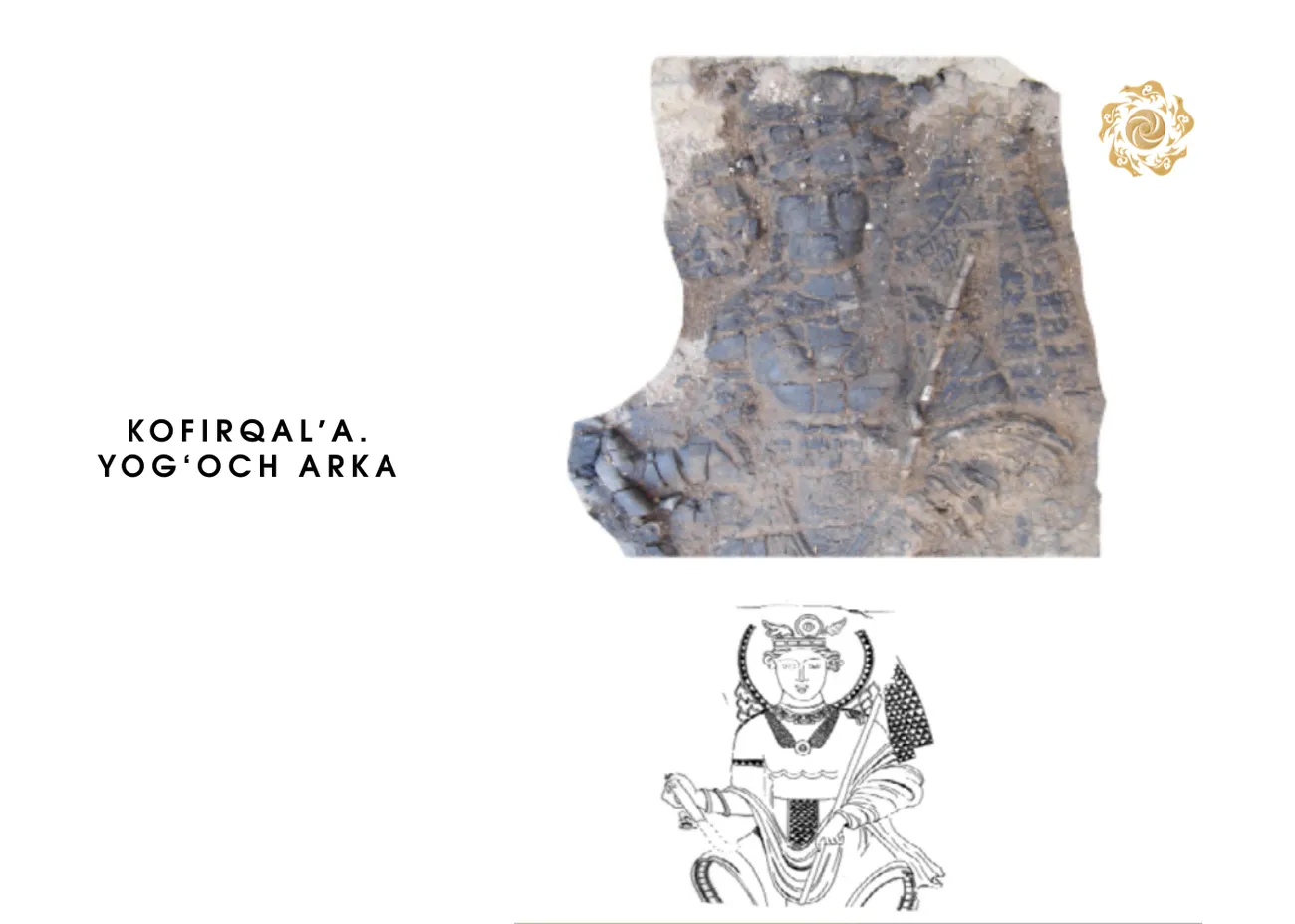2017-yilda qo‘rg‘onning shimoliy qismidagi Markaziy xonada kuygan, o‘yib ishlov berilgan yog‘ochdan yasalgan dekoratsiya va shuningdek bir panno (147x121 sm), arka (156x51 sm) va ikki ensiz taxtalar (uzunligi 1 m va eni 6–8 sm) topildi. Ushbu topilma topilgan xona Samarqand hukmdori sahna majmuasining taxt qismi hisoblanadi.