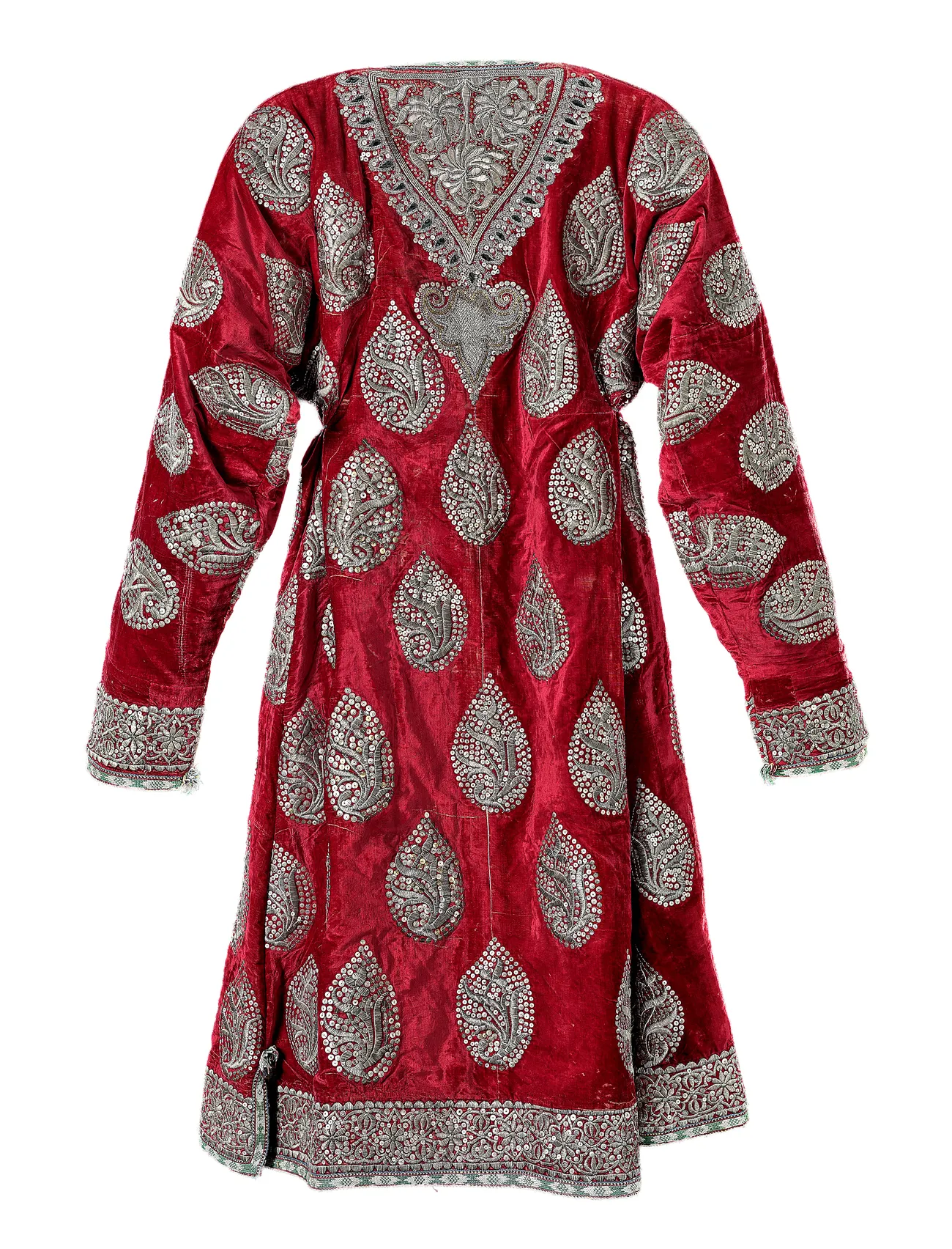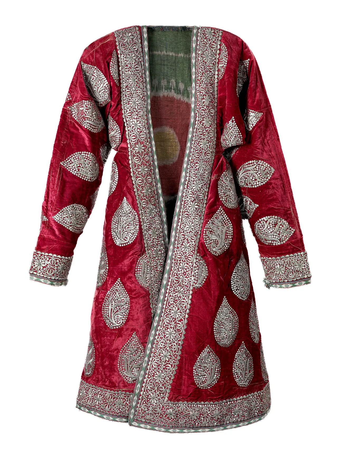 Ko‘rib turganingizdek, rasmda ayollar choponi namoyish etilgan. Aftidan, u erkak to‘nidan qayta bichib tikilgan. Qisman kesilgan tomchisimon surat va yenglarga qaytadan tikib qo‘yilgan burmalar shundan dalolat beradi. O‘sha davrda zardo‘zi kashta bilan bezatiladigan etiklar ham bo‘lgan. 1920-yillarda zardo‘zi kashta jamiyat tomonidan uncha talabgir bo‘lmagan. Ko‘p o‘tmay, zardo‘zi ustaxonalar bir qancha muddatdan keyin faollasha boshlagan. Harbiy kiyim daraja belgilari, raqs va teatr ust-boshlari, yangi hayot mavzusidagi tasvirlar tushirilgan devoriy bezak va pardalar ishlab chiqara boshlangan. Bugungi O‘zbekistonda sunʼiy zar ip bilan kashtalangan to‘q ko‘k baxmal to‘ndan ko‘pincha esdalik sovg‘asi yoki bayram kiyimi, masalan, to‘yda kelin-kuyov libosi sifatida foydalaniladi. Agar amirlik davrida zardo‘zi to‘nlar ijtimoiy mavqe ko‘rsatkichi bo‘lgan bo‘lsa, endilikda ular o‘zbek milliy libosining bayramona ruhini o‘zida jo etadi. Zardo‘zi buyumlar otlarni yasatishda ham ishlatilgan. Ust-boshlarda bo‘lgani kabi otning bezagi uning egasi millatidan emas, balki mavqeidan darak beruvchi alomat sanalgan. Qimmatbaho toshlar bilan bezatilgan dabdabali egar-jabduq va zar ipdan gul solib tikilgan yopiqlar otliqning o‘ziga xos ijtimoiy mavqeidan guvohlik bergan.